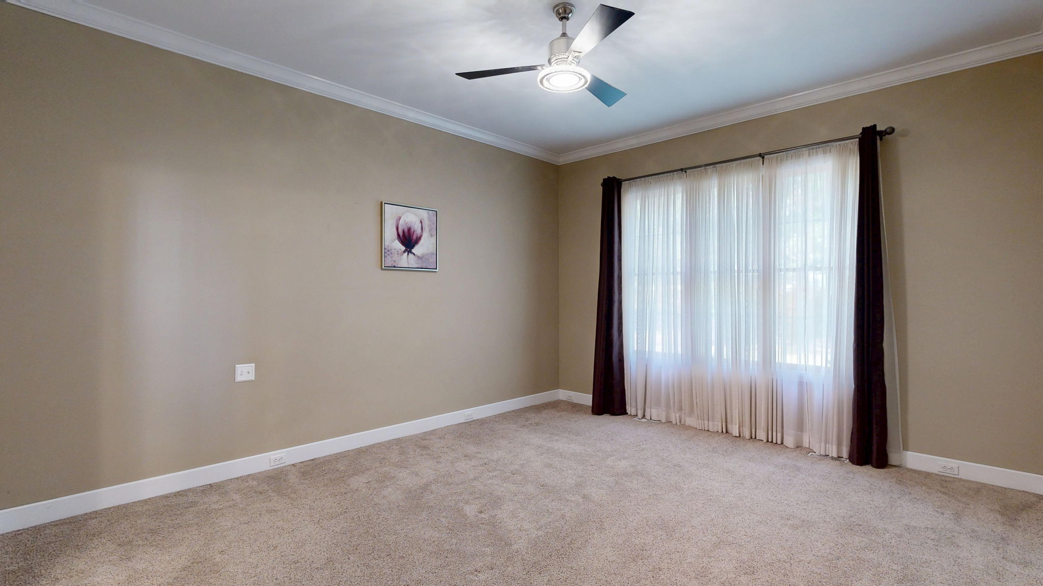 The luxurious primary suite provides a true escape, offering over 220 square feet of tranquility. This serene retreat includes a spa-like bathroom with a walk-in shower, soaking tub, and a custom-shelved walk-in closet—perfect for effortless organization.